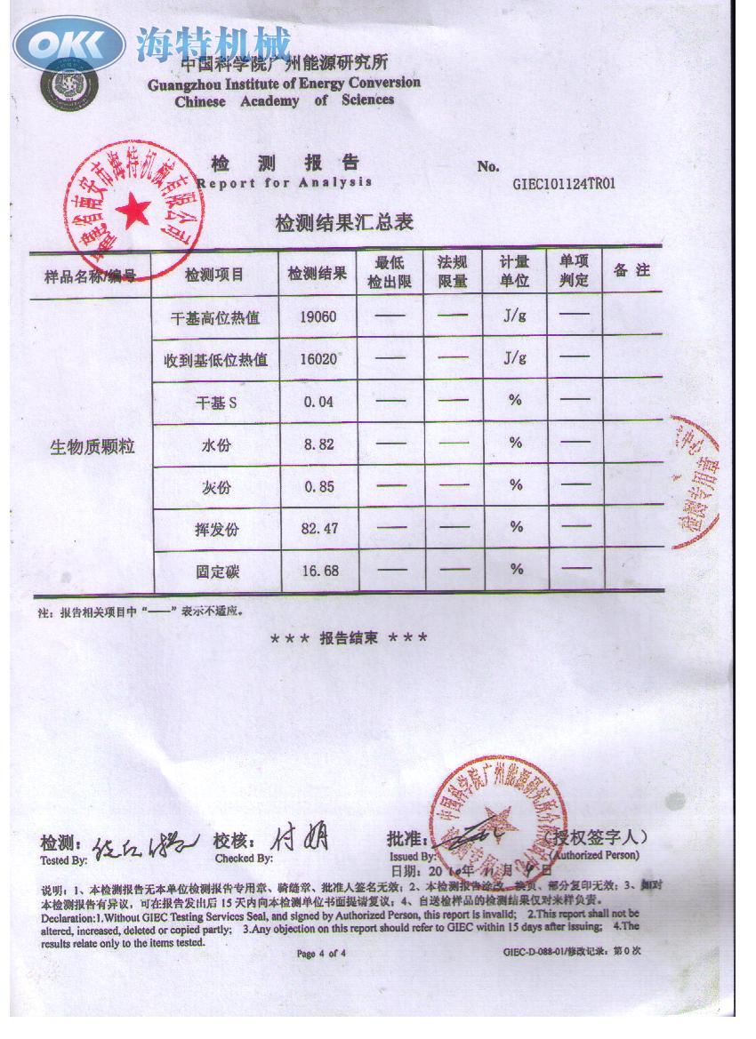 生物質(zhì)顆粒燃料檢測報告